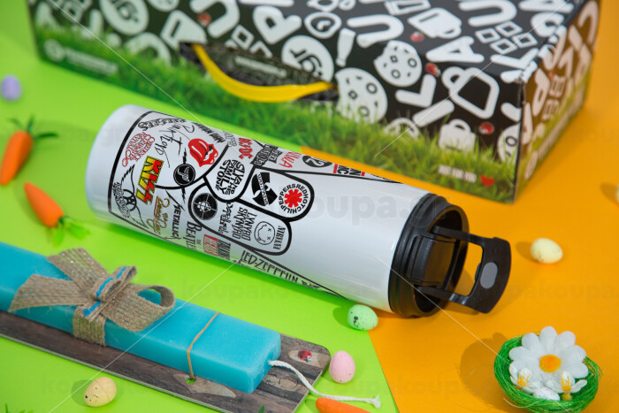 Best Rock Bands hand, Πασχαλινή Λαμπάδα με Travel Tumbler θερμό με διπλό καπάκι (600ml, BPA free) & κερί αρωματικό πλακέ (30cm) (ΤΙΡΚΟΥΑΖ)