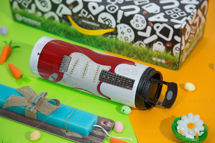 Guitar stratocaster, Πασχαλινή Λαμπάδα με Travel Tumbler θερμό με διπλό καπάκι (600ml, BPA free) & κερί αρωματικό πλακέ (30cm) (ΤΙΡΚΟΥΑΖ)