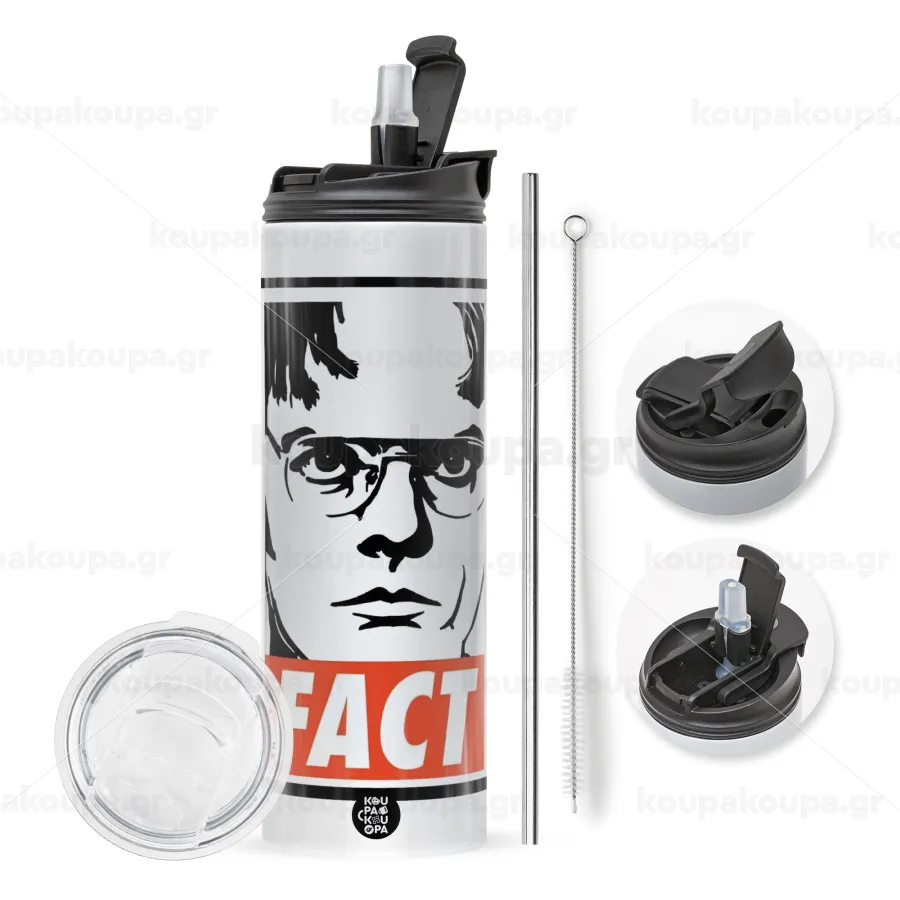με 2 καπάκια για να επιλέξετε ανάμεσα σε απλό ποτήρι με καλαμάκι ή μετατροπή σε παγούρι θερμό με 2 τρόπους χρήσης (καλαμάκι ή στόμιο) με μεταλλικό επαναχρησιμοποιούμενο καλαμάκι. Απολαύστε το αγαπημένο σας ρόφημα κάθε στιγμή στο μοναδικό αυτό οικολογικό θερμό. Διατηρεί τη θερμοκρασία για αρκετές ώρες και είναι κατασκευασμένο από ανοξείδωτο ατσάλι. Κατάλληλο για ζεστά και κρύα ροφήματα. Συνοδεύεται από βουρτσάκι καθαρισμού για το καλαμάκι.