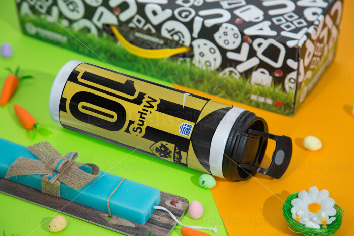 ΑΕΚ εμφάνιση, Πασχαλινή Λαμπάδα με Travel Tumbler θερμό με διπλό καπάκι (600ml, BPA free) & κερί αρωματικό πλακέ (30cm) (ΤΙΡΚΟΥΑΖ)