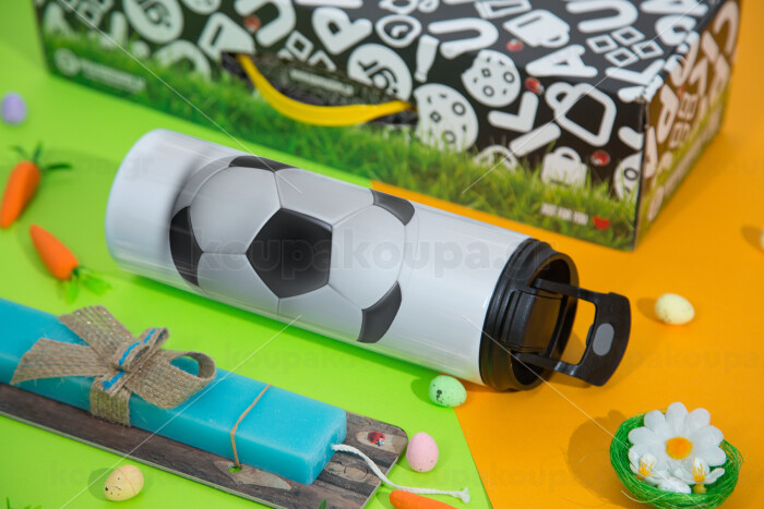 Μπάλα ποδοσφαίρου, Πασχαλινή Λαμπάδα με Travel Tumbler θερμό με διπλό καπάκι (600ml, BPA free) & κερί αρωματικό πλακέ (30cm) (ΤΙΡΚΟΥΑΖ)