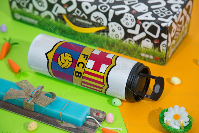 Barcelona FC, Πασχαλινή Λαμπάδα με Travel Tumbler θερμό με διπλό καπάκι (600ml, BPA free) & κερί αρωματικό πλακέ (30cm) (ΤΙΡΚΟΥΑΖ)