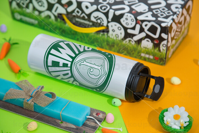 Palmeiras, Πασχαλινή Λαμπάδα με Travel Tumbler θερμό με διπλό καπάκι (600ml, BPA free) & κερί αρωματικό πλακέ (30cm) (ΤΙΡΚΟΥΑΖ)