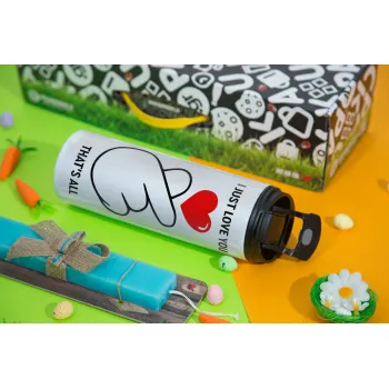 I just love you, that's all., Πασχαλινή Λαμπάδα με Travel Tumbler θερμό με διπλό καπάκι (600ml, BPA free) & κερί αρωματικό πλακέ (30cm) (ΤΙΡΚΟΥΑΖ)