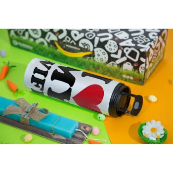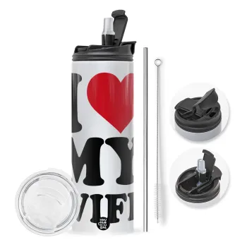 I Love my Wife, Πασχαλινή Λαμπάδα με Travel Tumbler θερμό με διπλό καπάκι (600ml, BPA free) & κερί αρωματικό πλακέ (30cm) (ΤΙΡΚΟΥΑΖ)
