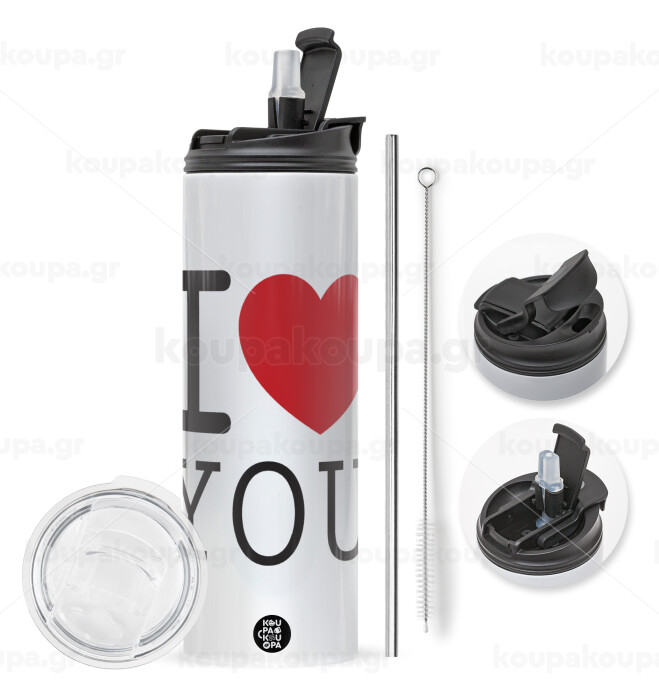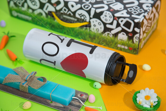 I Love you classic, Πασχαλινή Λαμπάδα με Travel Tumbler θερμό με διπλό καπάκι (600ml, BPA free) & κερί αρωματικό πλακέ (30cm) (ΤΙΡΚΟΥΑΖ)