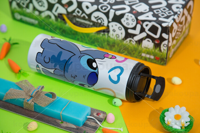 Lilo & Stitch painting, Πασχαλινή Λαμπάδα με Travel Tumbler θερμό με διπλό καπάκι (600ml, BPA free) & κερί αρωματικό πλακέ (30cm) (ΤΙΡΚΟΥΑΖ)