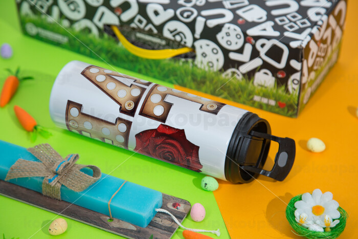 Love lights and roses, Πασχαλινή Λαμπάδα με Travel Tumbler θερμό με διπλό καπάκι (600ml, BPA free) & κερί αρωματικό πλακέ (30cm) (ΤΙΡΚΟΥΑΖ)