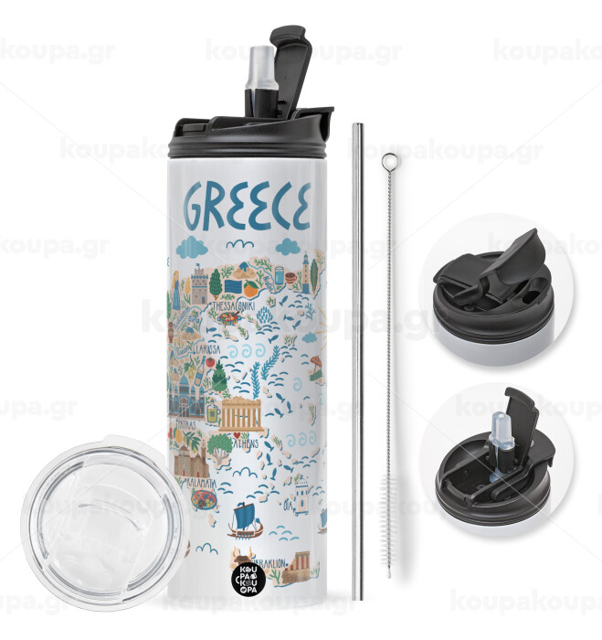 Χάρτης Ελλάδος, Πασχαλινή Λαμπάδα με Travel Tumbler θερμό με διπλό καπάκι (600ml, BPA free) & κερί αρωματικό πλακέ (30cm) (ΤΙΡΚΟΥΑΖ)