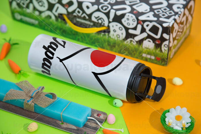 Japan flag, Πασχαλινή Λαμπάδα με Travel Tumbler θερμό με διπλό καπάκι (600ml, BPA free) & κερί αρωματικό πλακέ (30cm) (ΤΙΡΚΟΥΑΖ)