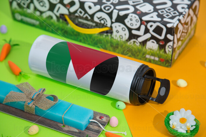 Σημαία Παλαιστίνης, Πασχαλινή Λαμπάδα με Travel Tumbler θερμό με διπλό καπάκι (600ml, BPA free) & κερί αρωματικό πλακέ (30cm) (ΤΙΡΚΟΥΑΖ)
