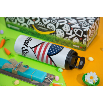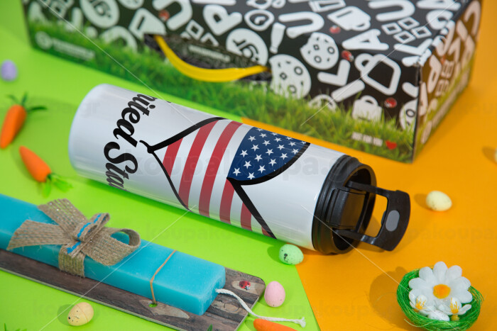 USA flag, Πασχαλινή Λαμπάδα με Travel Tumbler θερμό με διπλό καπάκι (600ml, BPA free) & κερί αρωματικό πλακέ (30cm) (ΤΙΡΚΟΥΑΖ)
