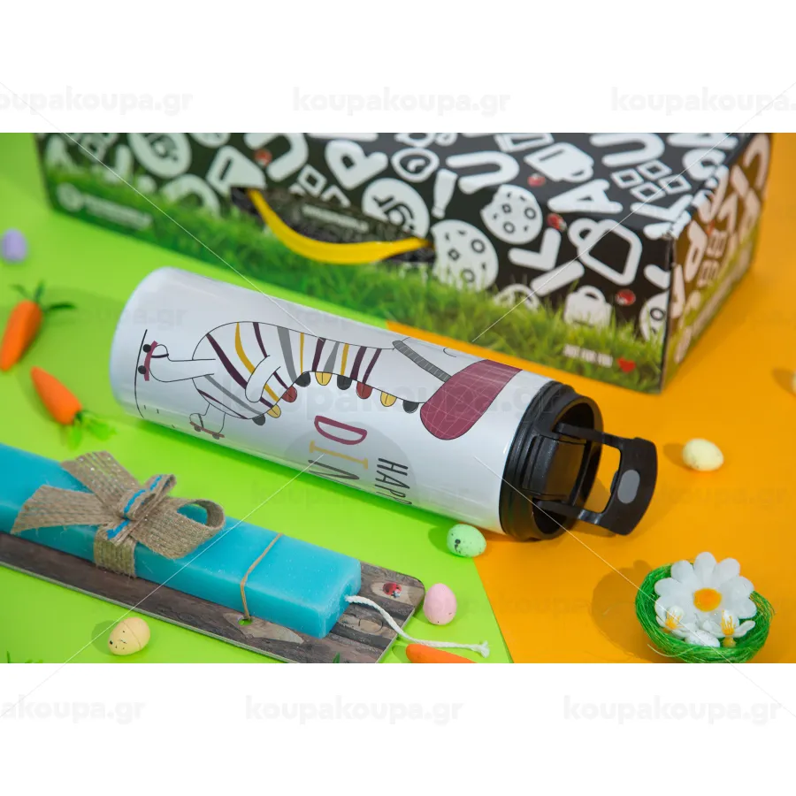 Happy Dino, Πασχαλινή Λαμπάδα με Travel Tumbler θερμό με διπλό καπάκι (600ml, BPA free) & κερί αρωματικό πλακέ (30cm) (ΤΙΡΚΟΥΑΖ)