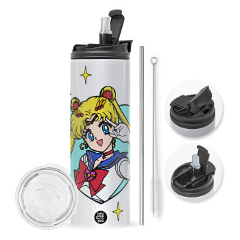 Sailor Moon star, Πασχαλινή Λαμπάδα με Travel Tumbler θερμό με διπλό καπάκι (600ml, BPA free) & κερί αρωματικό πλακέ (30cm) (ΤΙΡΚΟΥΑΖ)