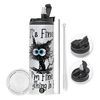 Cat, It's Fine I'm Fine Everything Is Fine, Πασχαλινή Λαμπάδα με Travel Tumbler θερμό με διπλό καπάκι (600ml, BPA free) & κερί αρωματικό πλακέ (30cm) (ΤΙΡΚΟΥΑΖ)