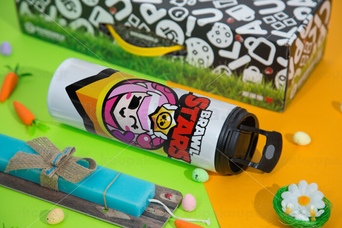 Brawl Stars Melodie, Πασχαλινή Λαμπάδα με Travel Tumbler θερμό με διπλό καπάκι (600ml, BPA free) & κερί αρωματικό πλακέ (30cm) (ΤΙΡΚΟΥΑΖ)