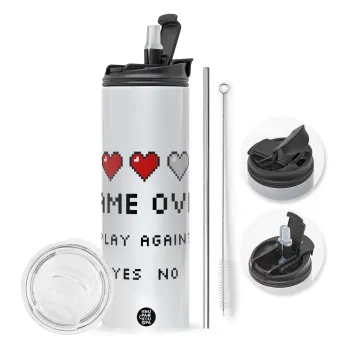 GAME OVER, Play again? YES - NO, Πασχαλινή Λαμπάδα με Travel Tumbler θερμό με διπλό καπάκι (600ml, BPA free) & κερί αρωματικό πλακέ (30cm) (ΤΙΡΚΟΥΑΖ)