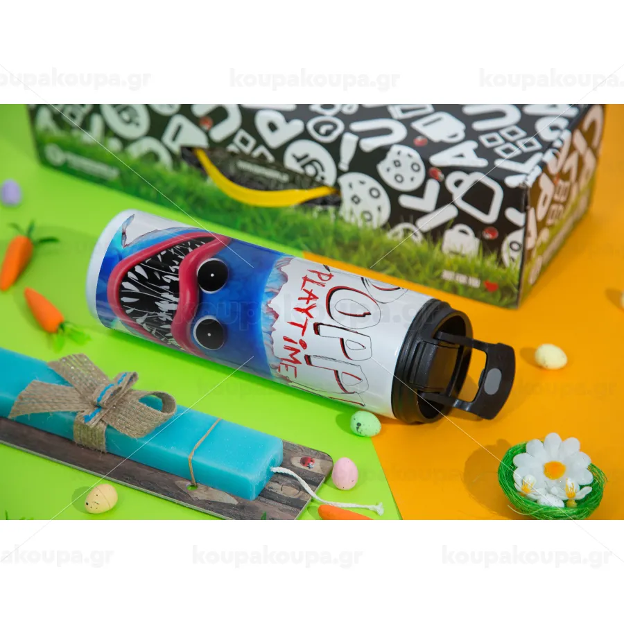 Poppy Playtime Huggy wuggy, Πασχαλινή Λαμπάδα με Travel Tumbler θερμό με διπλό καπάκι (600ml, BPA free) & κερί αρωματικό πλακέ (30cm) (ΤΙΡΚΟΥΑΖ)