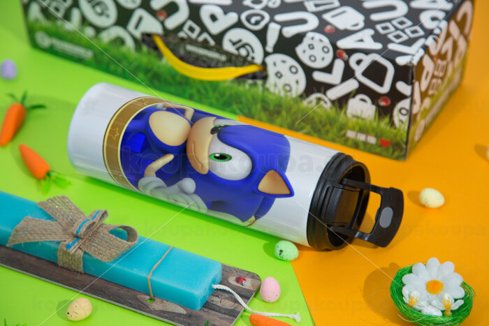Sonic the hedgehog, Πασχαλινή Λαμπάδα με Travel Tumbler θερμό με διπλό καπάκι (600ml, BPA free) & κερί αρωματικό πλακέ (30cm) (ΤΙΡΚΟΥΑΖ)