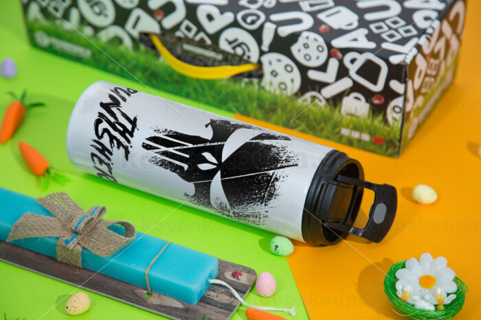The punisher, Πασχαλινή Λαμπάδα με Travel Tumbler θερμό με διπλό καπάκι (600ml, BPA free) & κερί αρωματικό πλακέ (30cm) (ΤΙΡΚΟΥΑΖ)