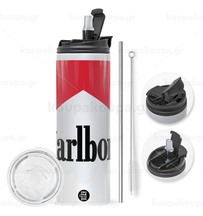 με 2 καπάκια για να επιλέξετε ανάμεσα σε απλό ποτήρι με καλαμάκι ή μετατροπή σε παγούρι θερμό με 2 τρόπους χρήσης (καλαμάκι ή στόμιο) με μεταλλικό επαναχρησιμοποιούμενο καλαμάκι. Απολαύστε το αγαπημένο σας ρόφημα κάθε στιγμή στο μοναδικό αυτό οικολογικό θερμό. Διατηρεί τη θερμοκρασία για αρκετές ώρες και είναι κατασκευασμένο από ανοξείδωτο ατσάλι. Κατάλληλο για ζεστά και κρύα ροφήματα. Συνοδεύεται από βουρτσάκι καθαρισμού για το καλαμάκι.