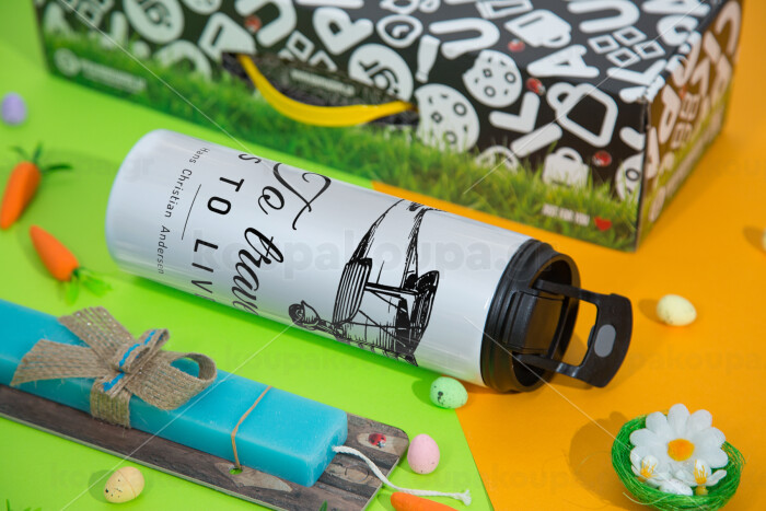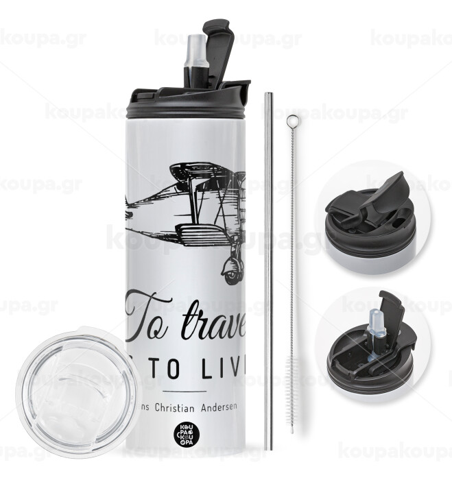 To travel is to live, Πασχαλινή Λαμπάδα με Travel Tumbler θερμό με διπλό καπάκι (600ml, BPA free) & κερί αρωματικό πλακέ (30cm) (ΤΙΡΚΟΥΑΖ)