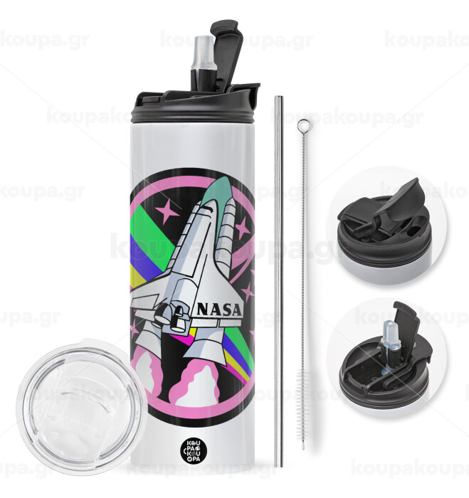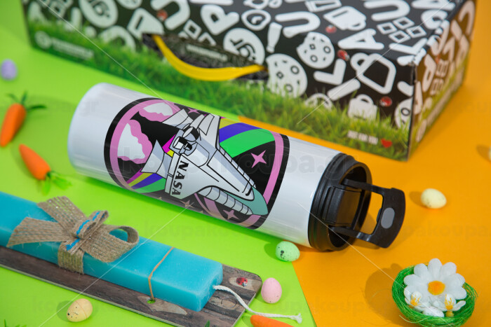 NASA pink, Πασχαλινή Λαμπάδα με Travel Tumbler θερμό με διπλό καπάκι (600ml, BPA free) & κερί αρωματικό πλακέ (30cm) (ΤΙΡΚΟΥΑΖ)