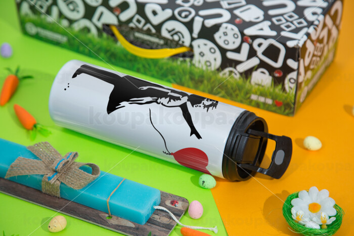 Banksy (Hope), Πασχαλινή Λαμπάδα με Travel Tumbler θερμό με διπλό καπάκι (600ml, BPA free) & κερί αρωματικό πλακέ (30cm) (ΤΙΡΚΟΥΑΖ)
