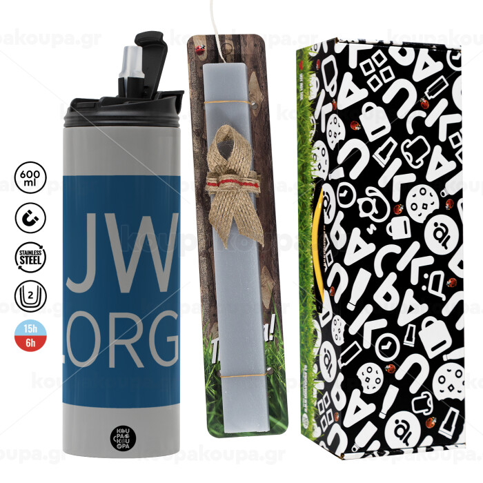 JW.ORG, Πασχαλινή Λαμπάδα με Travel Tumbler θερμό (600ml, BPA free) & κερί αρωματικό πλακέ (30cm) (ΓΚΡΙ)