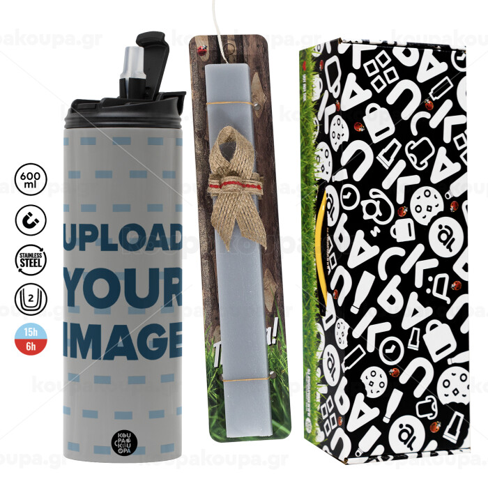 Το δικό σου σχέδιο, Πασχαλινή Λαμπάδα με Travel Tumbler θερμό (600ml, BPA free) & κερί αρωματικό πλακέ (30cm) (ΓΚΡΙ)