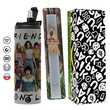 Friends Dont Lie, Stranger Things, Πασχαλινή Λαμπάδα με Travel Tumbler θερμό (600ml, BPA free) & κερί αρωματικό πλακέ (30cm) (ΓΚΡΙ)