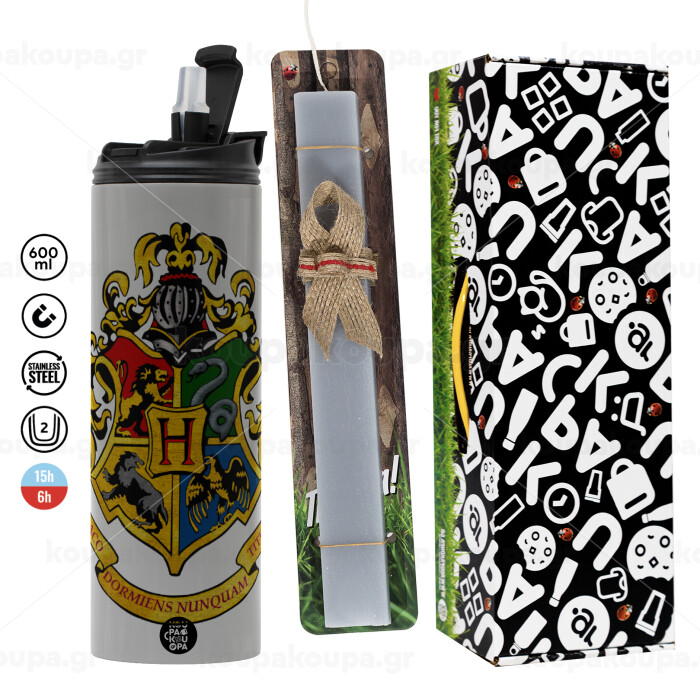 Hogwart's, Πασχαλινή Λαμπάδα με Travel Tumbler θερμό (600ml, BPA free) & κερί αρωματικό πλακέ (30cm) (ΓΚΡΙ)
