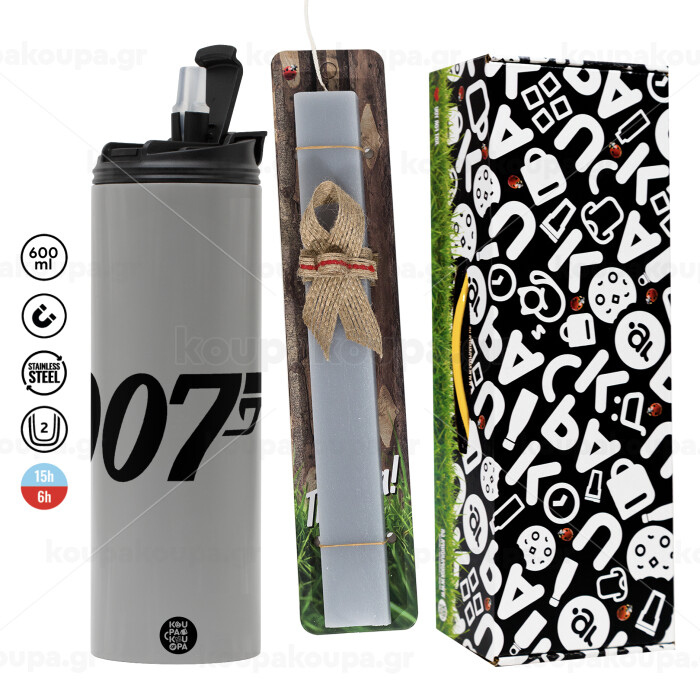 James Bond 007, Πασχαλινή Λαμπάδα με Travel Tumbler θερμό (600ml, BPA free) & κερί αρωματικό πλακέ (30cm) (ΓΚΡΙ)