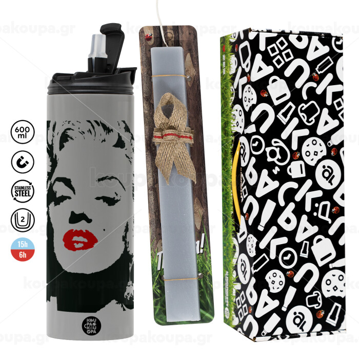 Merilin, Πασχαλινή Λαμπάδα με Travel Tumbler θερμό (600ml, BPA free) & κερί αρωματικό πλακέ (30cm) (ΓΚΡΙ)