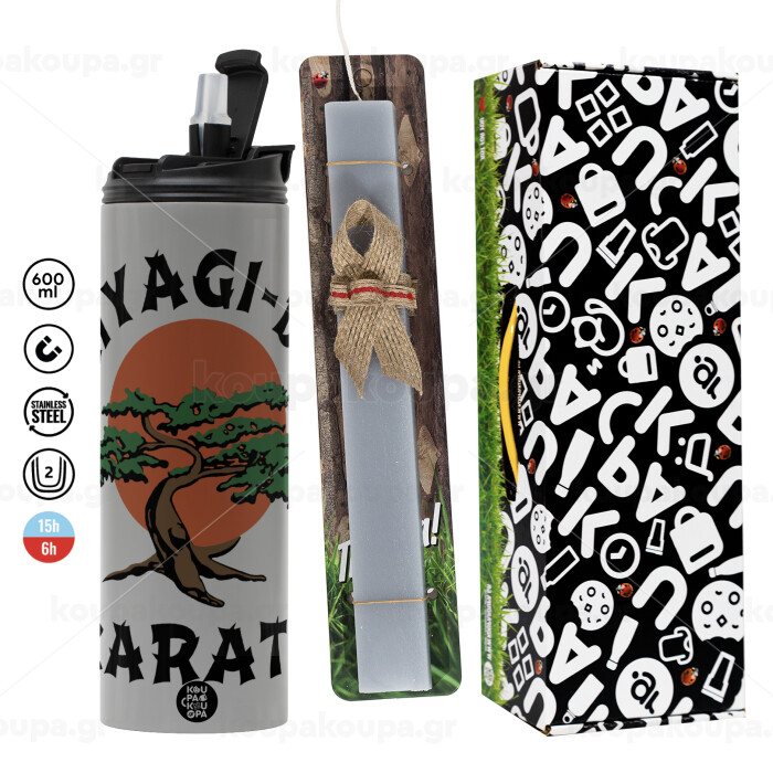 Miyagi-do karate, Πασχαλινή Λαμπάδα με Travel Tumbler θερμό (600ml, BPA free) & κερί αρωματικό πλακέ (30cm) (ΓΚΡΙ)