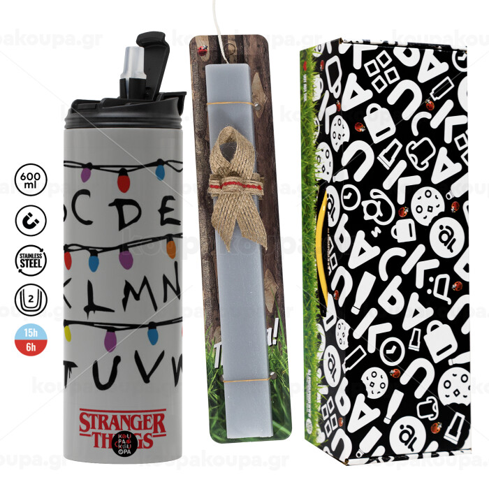 Stranger Things ABC, Πασχαλινή Λαμπάδα με Travel Tumbler θερμό (600ml, BPA free) & κερί αρωματικό πλακέ (30cm) (ΓΚΡΙ)