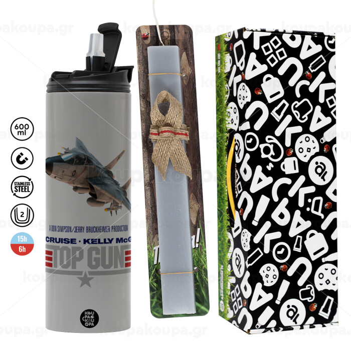 Top Gun, Πασχαλινή Λαμπάδα με Travel Tumbler θερμό (600ml, BPA free) & κερί αρωματικό πλακέ (30cm) (ΓΚΡΙ)