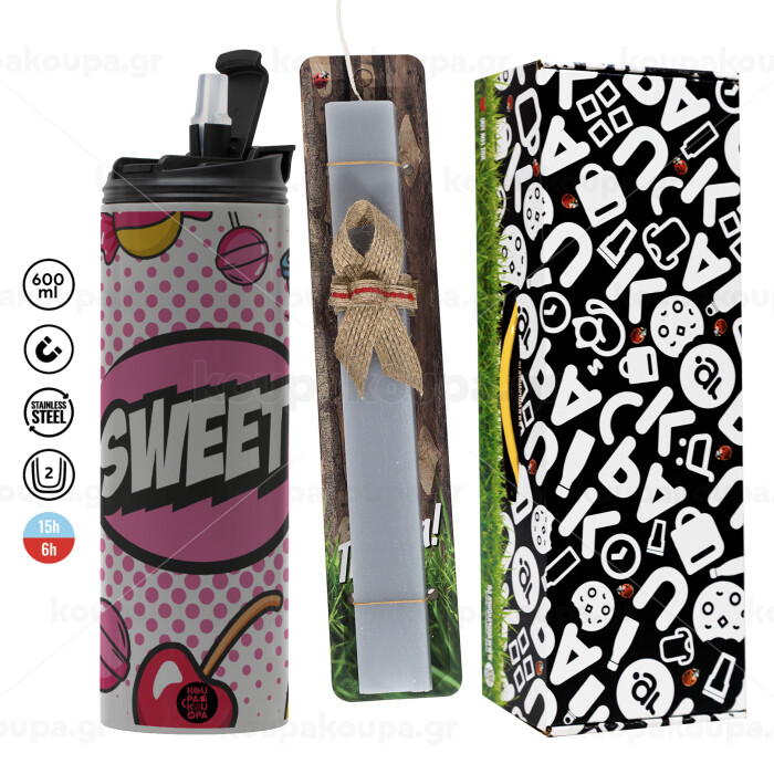 SWEET, Πασχαλινή Λαμπάδα με Travel Tumbler θερμό (600ml, BPA free) & κερί αρωματικό πλακέ (30cm) (ΓΚΡΙ)