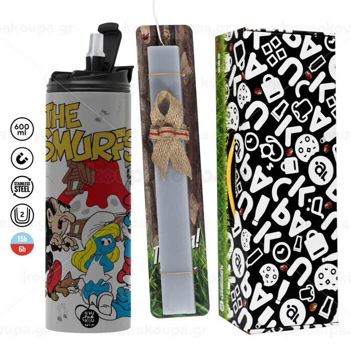 Τα στρουμφάκια, Πασχαλινή Λαμπάδα με Travel Tumbler θερμό (600ml, BPA free) & κερί αρωματικό πλακέ (30cm) (ΓΚΡΙ)