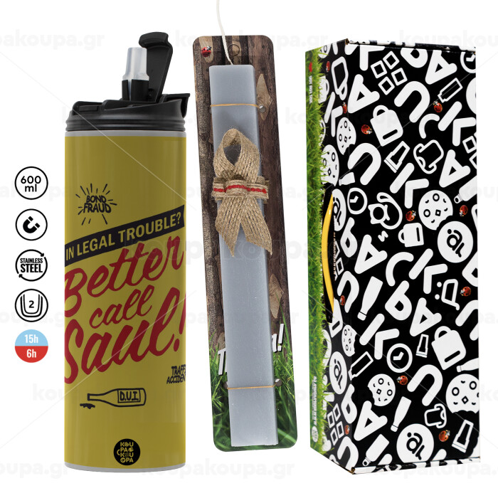 Better Call Saul, Πασχαλινή Λαμπάδα με Travel Tumbler θερμό (600ml, BPA free) & κερί αρωματικό πλακέ (30cm) (ΓΚΡΙ)