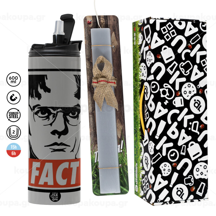 Dunder Mifflin FACT, Πασχαλινή Λαμπάδα με Travel Tumbler θερμό (600ml, BPA free) & κερί αρωματικό πλακέ (30cm) (ΓΚΡΙ)