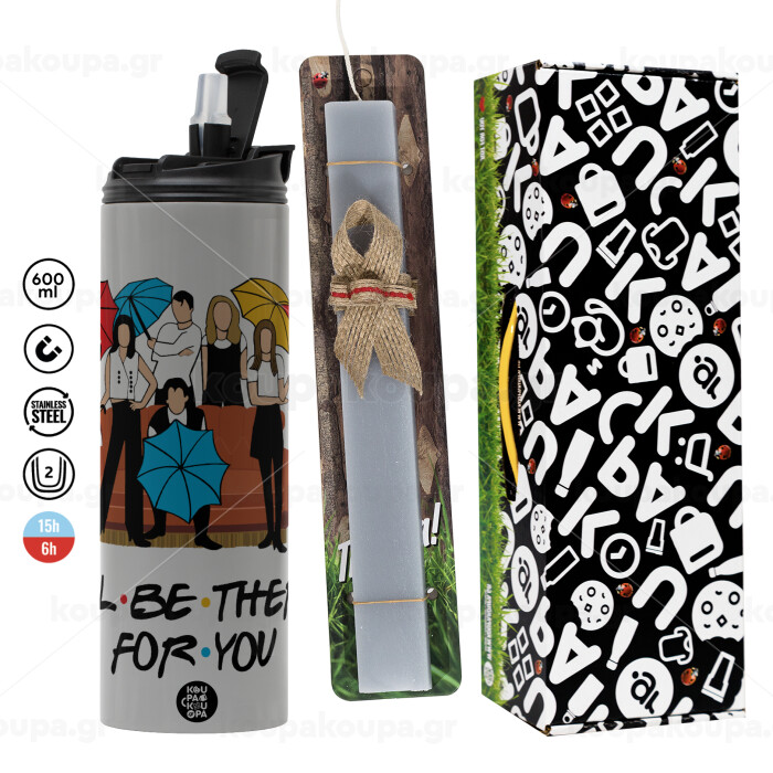Friends cover, Πασχαλινή Λαμπάδα με Travel Tumbler θερμό (600ml, BPA free) & κερί αρωματικό πλακέ (30cm) (ΓΚΡΙ)