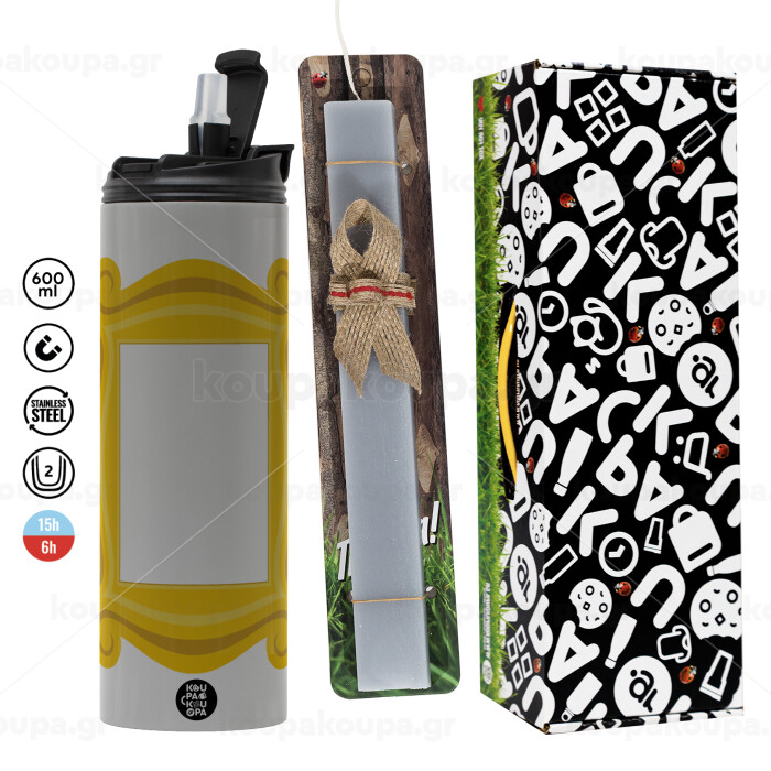 Friends frame, Πασχαλινή Λαμπάδα με Travel Tumbler θερμό (600ml, BPA free) & κερί αρωματικό πλακέ (30cm) (ΓΚΡΙ)