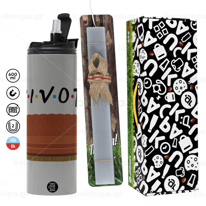 Friends Pivot, Πασχαλινή Λαμπάδα με Travel Tumbler θερμό (600ml, BPA free) & κερί αρωματικό πλακέ (30cm) (ΓΚΡΙ)
