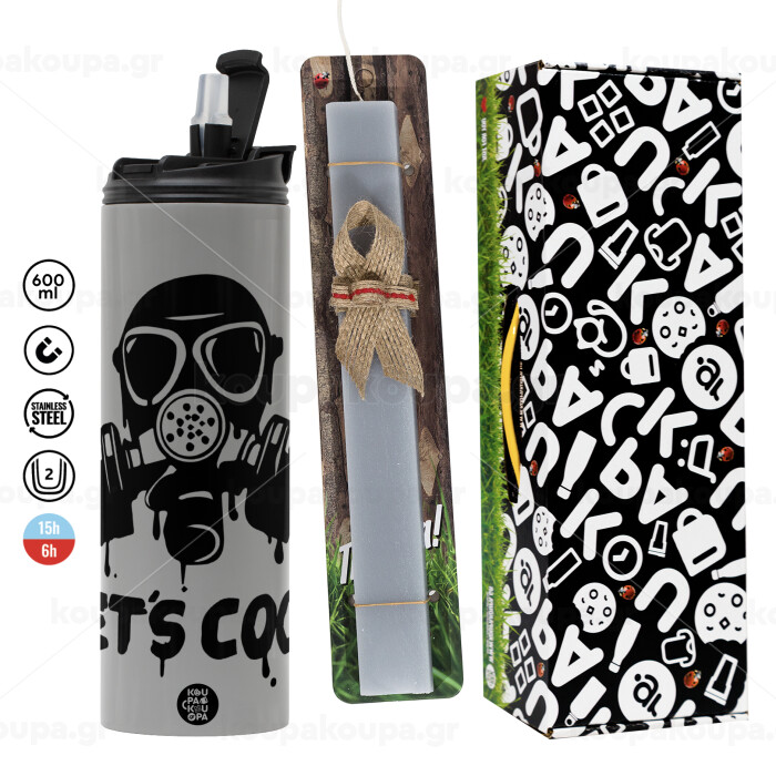 Let's cook mask, Πασχαλινή Λαμπάδα με Travel Tumbler θερμό (600ml, BPA free) & κερί αρωματικό πλακέ (30cm) (ΓΚΡΙ)