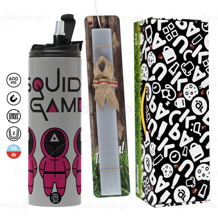 Το παιχνίδι του καλαμαριού, Πασχαλινή Λαμπάδα με Travel Tumbler θερμό (600ml, BPA free) & κερί αρωματικό πλακέ (30cm) (ΓΚΡΙ)