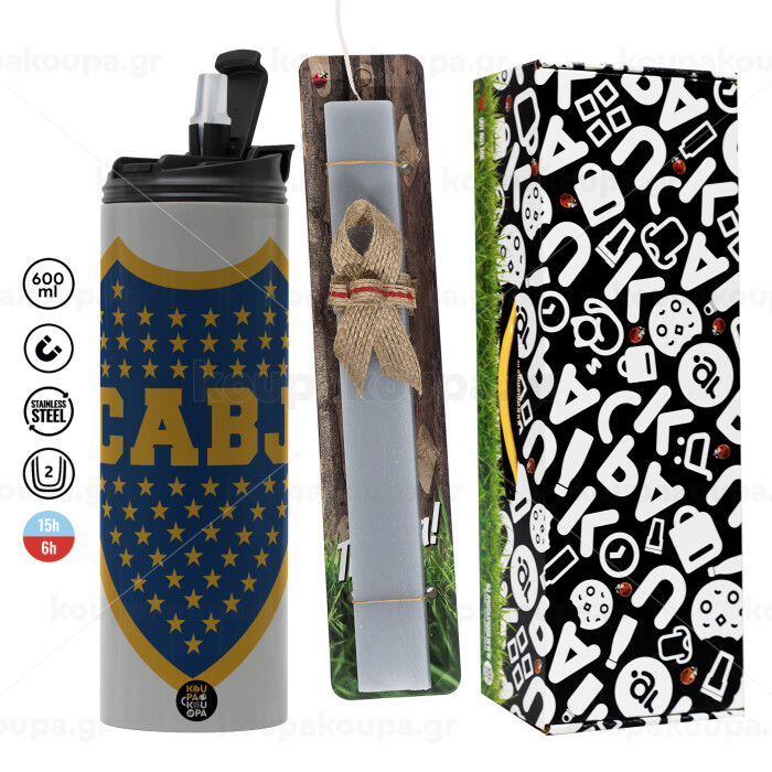 Club Atlético Boca Juniors, Πασχαλινή Λαμπάδα με Travel Tumbler θερμό (600ml, BPA free) & κερί αρωματικό πλακέ (30cm) (ΓΚΡΙ)