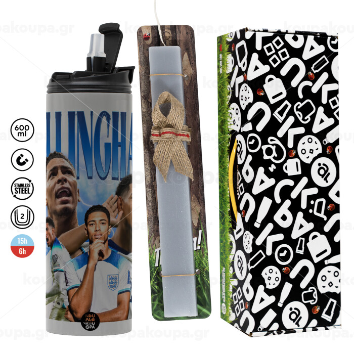 Jude Bellingham, Πασχαλινή Λαμπάδα με Travel Tumbler θερμό (600ml, BPA free) & κερί αρωματικό πλακέ (30cm) (ΓΚΡΙ)