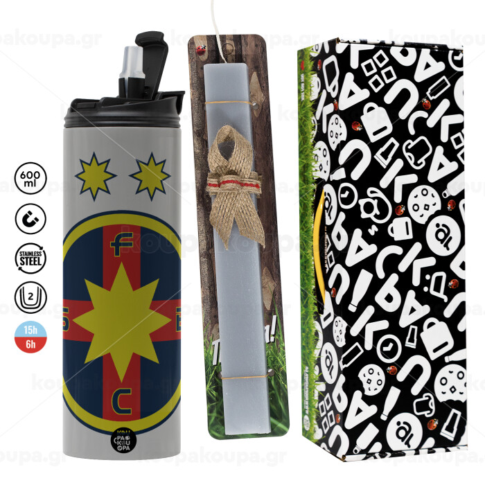 FC Steaua Bucuresti (FCSB), Πασχαλινή Λαμπάδα με Travel Tumbler θερμό (600ml, BPA free) & κερί αρωματικό πλακέ (30cm) (ΓΚΡΙ)