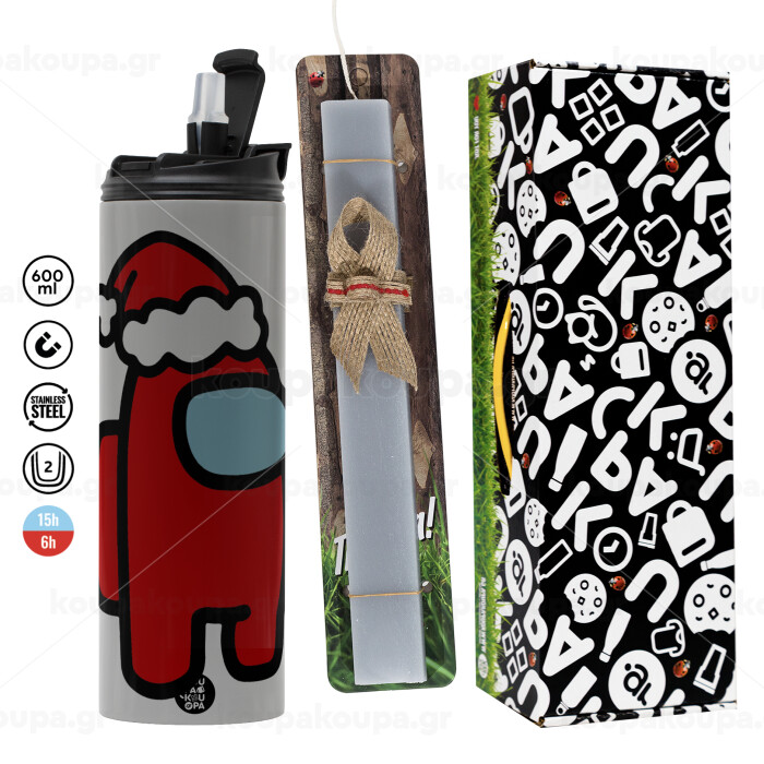 Among US Santa, Πασχαλινή Λαμπάδα με Travel Tumbler θερμό (600ml, BPA free) & κερί αρωματικό πλακέ (30cm) (ΓΚΡΙ)